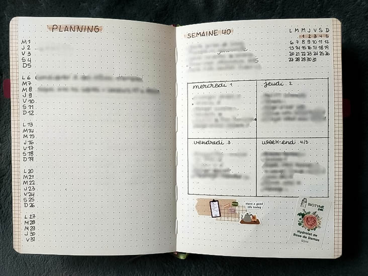 - Calendrier annuel, future log (pouvoir planifier à l’année pour avoir une vue d’ensemble)