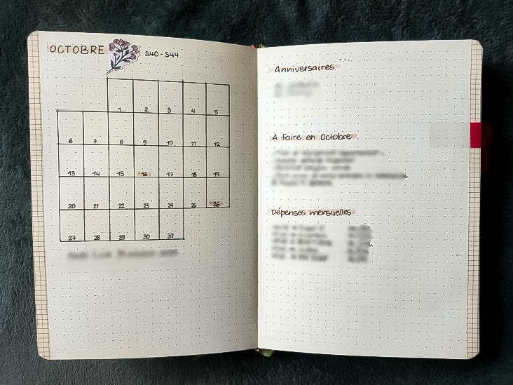 J’en suis mon huitième carnet! Cependant, je suis passée à une présentation ultra minimaliste. Je note l’essentiel. Il y a le calendrier du mois, anniversaires, taches à réaliser dans le mois, et mes dépenses mensuelles (les extras). La semaine se fait sur une page.